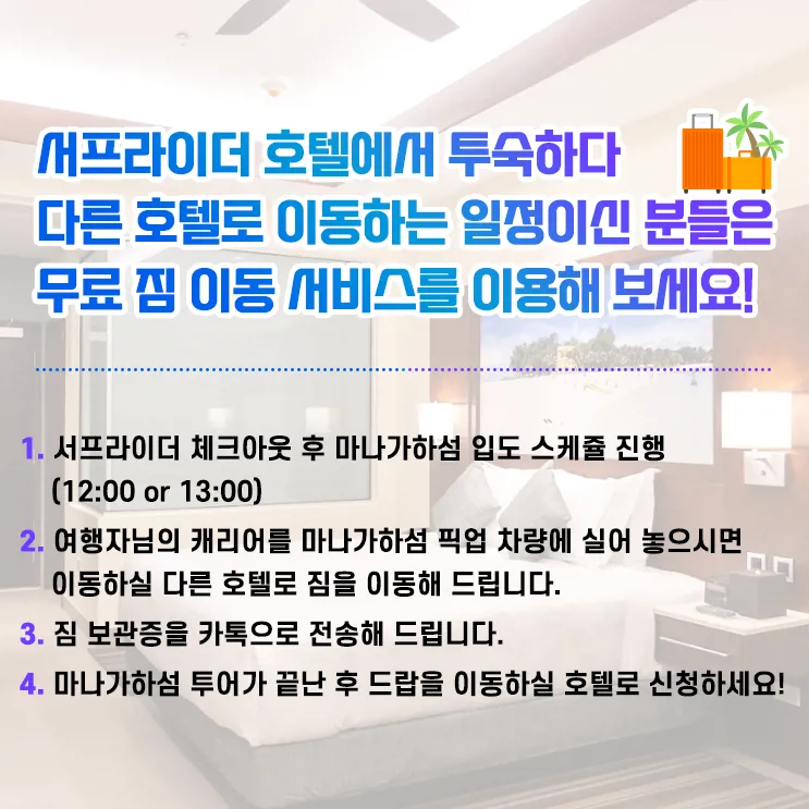 * * 서프라이더 호텔과 마나가하섬 투어 예약을 하신 분들 한정 서비스입니다.